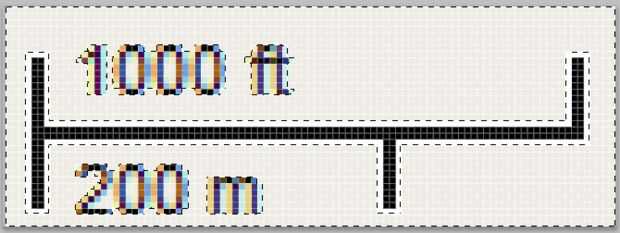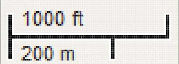 Con Google Maps todavía abierto y en el mismo nivel de zoom que usaste para tu mapa, echar un vistazo en la esquina inferior izquierda de la ventana de mapa. Hay una escala allí. Queremos utilizar esa escala en cada página. Mover el mapa alrededor hasta que la escala tiene un fondo de color detrás de él, como en la primera foto. Luego golpe imprimir pantalla, vaya a Photoshop, archivo -> nuevo, aceptar y pegar. Esto pegará el contenido del portapapeles en el archivo. Entonces cultivo alrededor de la escala y zoom como en la segunda foto.