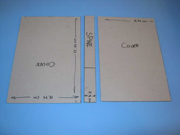 Medir su folletos frente y la columna vertebral. Utilizar estas mediciones para marcar puntos de corte en su cartón endurecido para añadir unos centímetros a la longitud y la anchura. Estos centímetros adicionales le dará un pequeño espacio entre las páginas y la portada del libro. Al agregar longitud Asegúrese de añadir la longitud misma a cada tapa y el lomo así. El ancho de la columna vertebral debe ser el ancho de su cuaderno. Para resumir, la altura de la columna vertebral debe coincidir con la altura de la frente y respaldo. Las cubiertas delanteras y traseros deben ser el mismo todo.