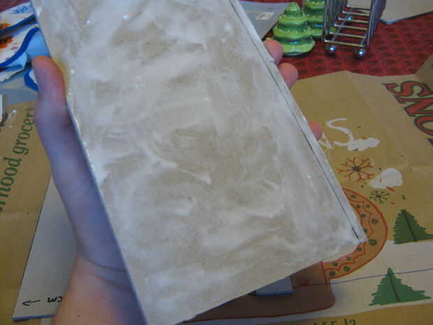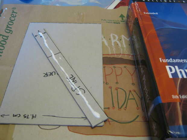 Mientras que las cubiertas se ponen encima de la bolsa de papel traza un perímetro de cada pieza de cartón en la bolsa. Este perímetro será su guía ya que pega las tapas al libro. Una vez que las líneas se dibujan hacia fuera puede pegar las tapas al libro, aplicando una capa de pegamento blanco a la cubierta y pegarse al papel. Guíese por las marcas de perímetro para mantener sus cubiertas alineados.