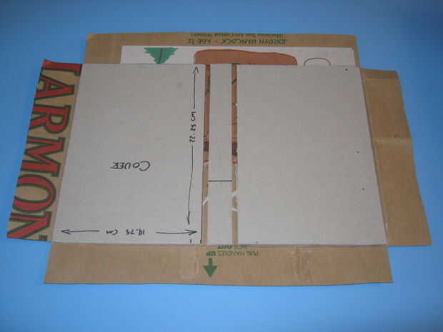 Una vez cubiertas de sus corte, los ponen lado a lado en una bolsa de papel marrón. Te quiere establecidos como sigue: cubierta, lomo, cubierta. Deje un pequeño espacio entre la columna vertebral y cada cubierta para permitir la flexión, la apertura y cierre del libro. Este debe ser sobre doble el espesor de la cartulina que está utilizando.