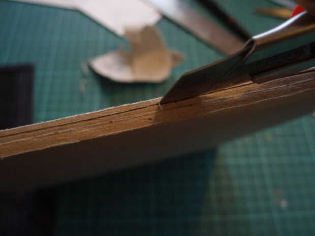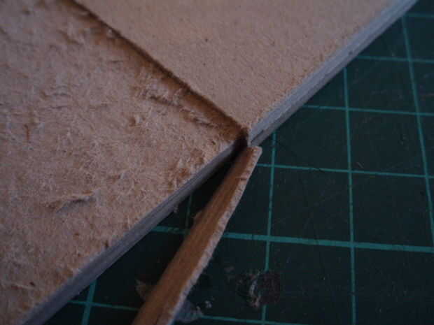4. cuando el cuero se plegará sobre en la parte inferior de la cubierta, usted necesitará empotrar estos lugares también. Cortar unos 10mm en estas áreas de la parte inferior.