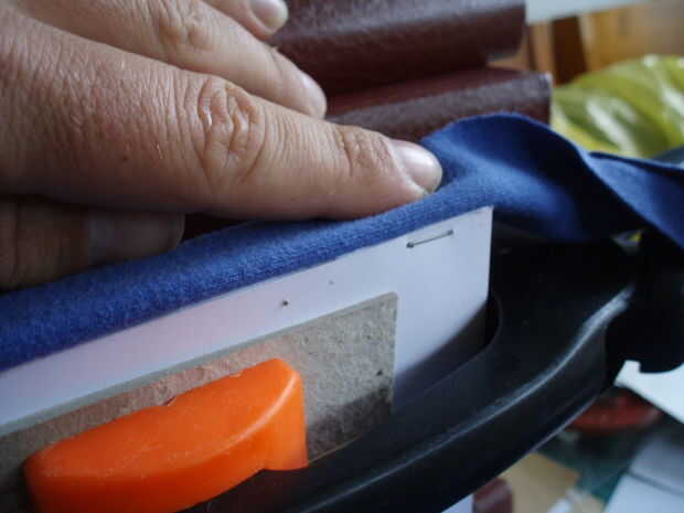 Añadir un paso... He utilizado un trozo de cinta como un marcador de página. Utilice el pegamento de contacto para este pegamento hacia abajo de la espina dorsal de algodón.