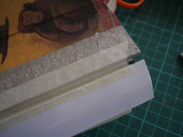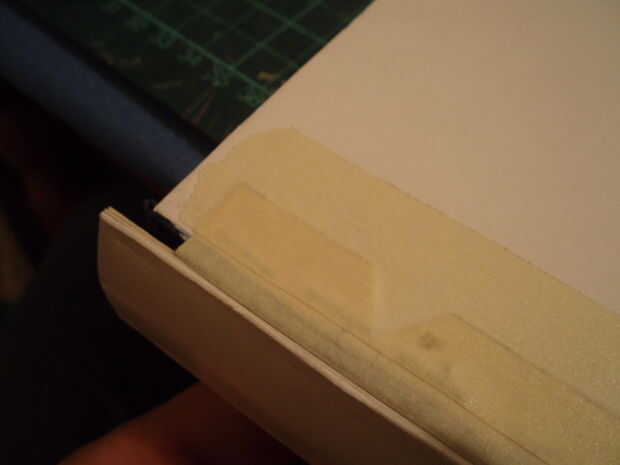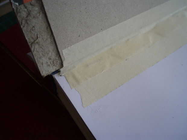 3. Abra la tapa y la parte inferior, entre la cubierta y el libro de la cinta. Idealmente ambos lados de la cinta conoceremos y stick.