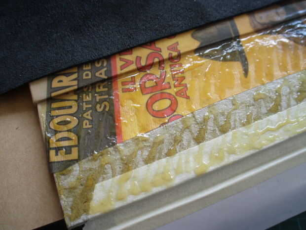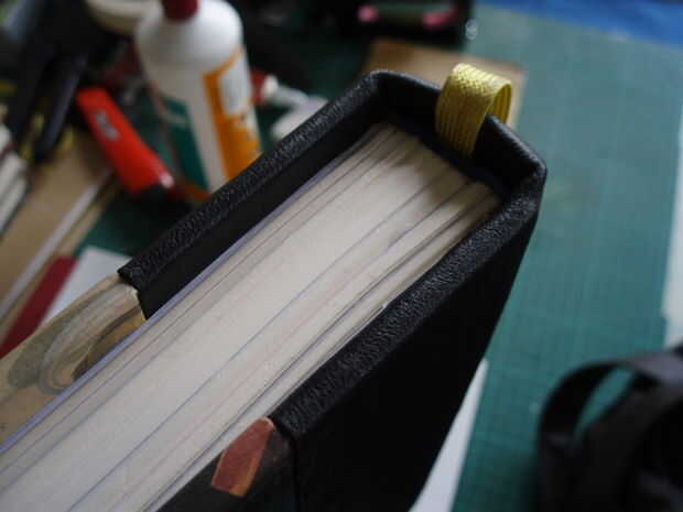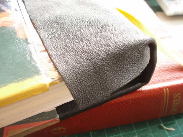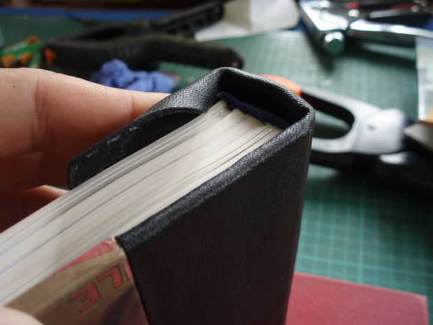 5. Repita con la contraportada. Tratar de estirar el cuero en lugar de tenerlo suelto.