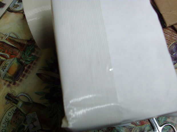 Dejar a un lado las cubiertas por ahora, vamos a trabajar en las páginas! Tomar el cuadro de libro tamaño y poner cinta de doble cara en tres de los lados (no donde las cubiertas o columna irá!). Necesita poner en ambos lados cortos a menos que quieras tu libro a ser más horizontal. Ahora sitck el libro blanco sobre la caja de lados y recortar un poco, pero no tanto puedes ver los lados en que del papel está. e el atar con correa la cinta y envuélvalo alrededor de la caja, pero haya un cierto exceso en los bordes para que pueda doblar hacia abajo y que se vea bien. Hacer cortes en los bordes y doble encima.