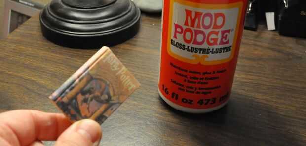 Cepillo de una ligera capa de Mod Podge en el exterior de la cubierta (espalda, espina dorsal y frontal). Déjelo secar.