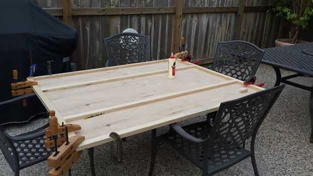 Ya he construido la estructura de madera y un panel de roble de 3/16 al frente que tenía la tienda de una hoja de 4 x 8 pies. La estructura del marco es simple, con 1 x 2 pulgadas piezas de pino con ángulos de 45 grados para definir el marco rectangular, dos soportes long-wise, metal L soportes para reforzar todas juntas (en lugar de triángulos) y luego pegar/bloqueo hacia abajo. Esto crea la forma de un lienzo de estilo del abrigo de la galería. Utilicé una lijadora de energía incluso a mis lados y alisar un poco mi panel.