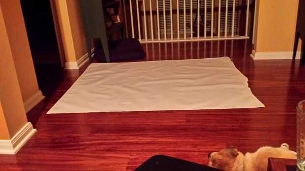 Haber obtenido cualquier panel de madera de tamaño y papel que desea utilizar, colocar el panel en la parte trasera de su papel y traza su contorno para usar como una guía de purga. Asegúrese de que su papel es más grande en cada dimensión que el panel de 4 a 6 pulgadas. Así que para mi panel 48 x 60, tenía una hoja de papel de un por-el-patio rollo en Texas arte fuente de 54 x 66 pulgadas.