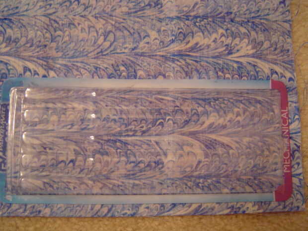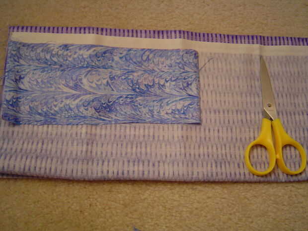 Esta bolsa es para lápices mecánicos. Coloque la caja sobre una tela y traza alrededor de él con una pluma. Asegúrese de tener la habitación extra en el trazo de la! Cortar el trazo y utilice esto para hacer una pieza de tela del mismo tamaño pero en la otra tela. Utilice uno de los primeros dos trozos de tela para trazar alrededor de él, esta vez más largo para una aleta. Repita el procedimiento en la otra tela.
