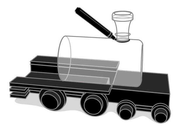 Pega una tapa de botella más pequeña redondeada en lugar detrás del embudo y luego pintar la caldera y el embudo. Spray es el mejor y si usted utiliza botellas claras, rocíe dentro para un acabado brillante hermoso.