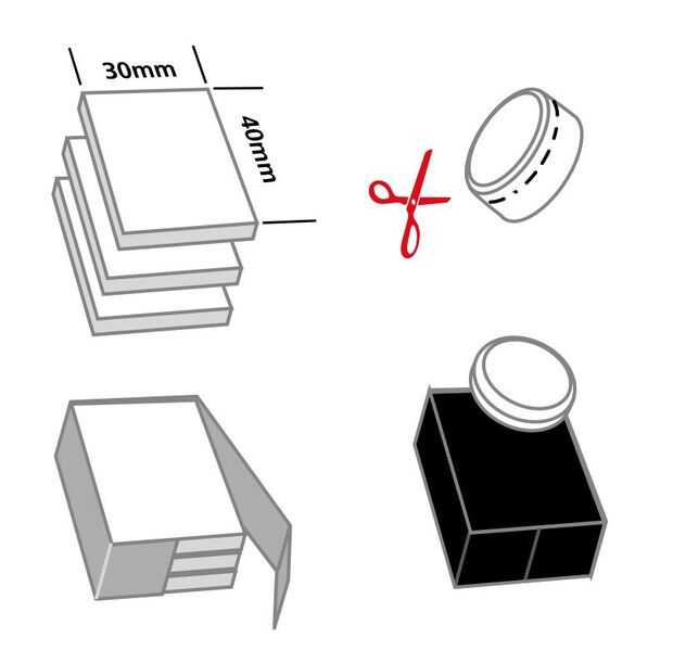 Hacer la lámpara de 3 pequeñas piezas rectangulares de cartón grueso pegados juntos. Para un acabado limpio, cubrir los bordes con tarjeta fina o papel y pintura o aerosol el bloque terminado, negro.