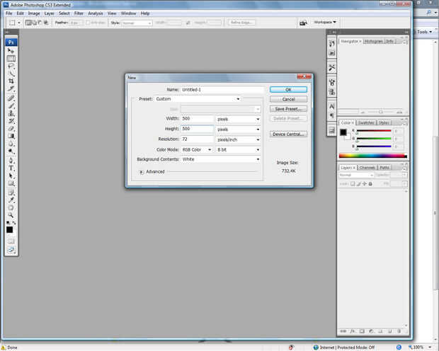 OK, aquí vamos. Comenzar con un nuevo documento en blanco. He usado 500 x 500, pero puede utilizar cualquier cosa que funcione para usted. Este concepto es muy adaptable.