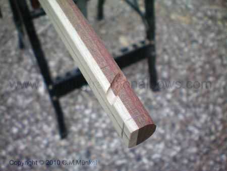 Montar una cadena de arco temporal y poco a poco iniciar el arco de flexión. Si el arco se dobla muy bien cuidadosamente dibujarla un poco más, si cualquier zonas rígidas, quitar madera un poco de estas zonas y nunca por las áreas débiles. Continuar así hasta que el arco se dobla bien y uniformemente a lo largo de toda la longitud del arco. Si el arco es demasiado fuerte necesitará quitar madera de toda la longitud del arco, pero tenga cuidado de que no quitar demasiado. ¡ Importante! Cuando este trabajo sólo quitar madera desde el lado del vientre del arco, no la espalda.