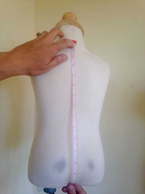 Para iniciar este proyecto medir tu personita desde la nuca de su cuello a la mitad de su entrepierna. Añadir 2-3" a esa medida y tal vez un poco más si un pañal está todavía involucrado. Ahora desde el centro de la espalda cuello medida abajo la cantidad y poner allí un pin y después doble la t en medio. Unos 2-3" en desde el dobladillo doble inicio una suave forma de U de 1/2 de corte, esto es donde se cose la cinta de cierre.