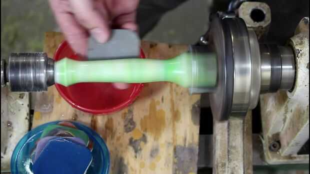 A continuación, arena húmeda a través de los granos. Polietileno de alta densidad puede ser tratado como cualquier acrílico en blanco en el torno. Tomó hasta grano 12000 con mis pastillas de MicroMesh. El HDPE es super slick y usted lo encontrará muy suave en este grano.