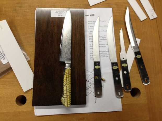 Como algunos de ustedes han visto, personal de la tienda aquí en el taller de Pier 9 ha buceado en el apasionante arte de hacer cuchillos, particularmente hermoso cuchillo manijas. Hemos hecho cocina, láminas cuchillos de caza, cuchillos de pesca, retractil y se rumorea que una daga mística samurai es en las obras. Por favor, recuerde que es importante seguir todas las reglas de la tienda y tratar el personal de la tienda de una manera respetuosa.