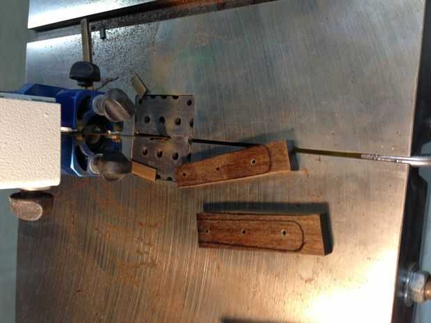 Continuación, utilice la Sierra de cinta Vertical para cortar la forma de su asa. Asegúrese de dejar un ocho de una pulgada de espacio adicional para que usted no corte demasiado material. Se realizará en la herramienta.