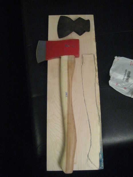 tuve suerte de tener un amigo que trabajaba en una tienda de mueble y tenía una pieza extra de 2 x 8 arce dando vueltas (a la derecha que lindo).  Sin saber lo que una buena forma para una manija, trazó la forma de otro mango de hacha a la madera y procedió a cortar con una sierra de calar.  Desafilar 2 hojas y cortar el mango.  Nunca he trabajado con madera, pero realmente me sorprendió en apenas tan duro y resistente era realmente.  Me aseguré de corte fuera de las líneas ya que siempre es más fácil de quitar más madera opone a intentar añadir algunos en. También he notado que si has intentado hacer la sierra caladora cortar más rápidamente la hoja no perpendicular a la superficie y usted terminaría con un corte torcido.
