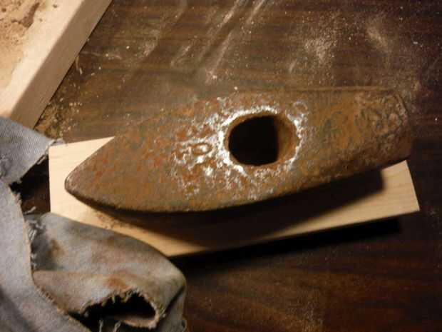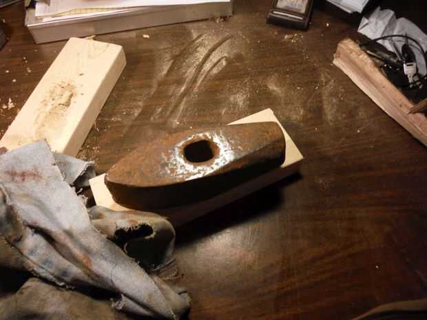 Utilice un cepillo de alambre y retire algunos el moho y la suciedad de la cabeza del martillo.
