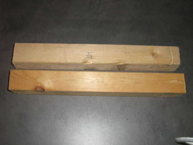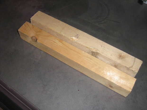 En primer lugar, usted necesita cortar su 2x2s en bastones de 1 pie de largo de madera. Esto es muy fácil: medir, mida dos veces, luego se corta. La longitud no es súper importante, así que si eres de una pulgada, no se preocupe.