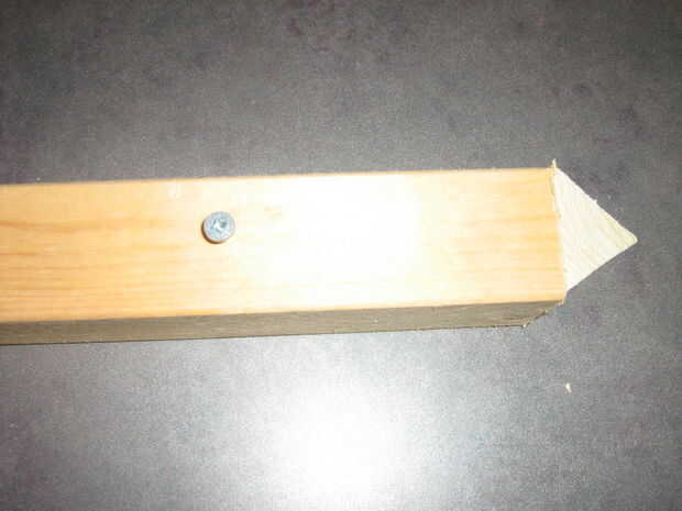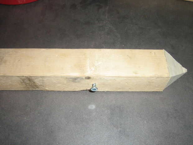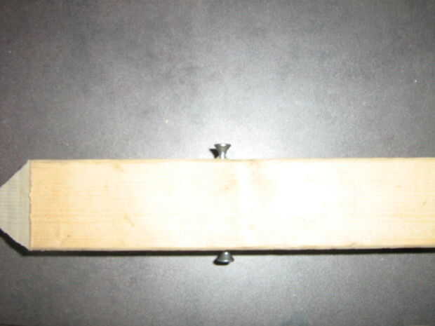 En uno de los puestos, atornillar los dos tornillos (uno a cada lado) justo enfrente de la marca que usted hizo. Ver las fotos de un poco más en detalle.