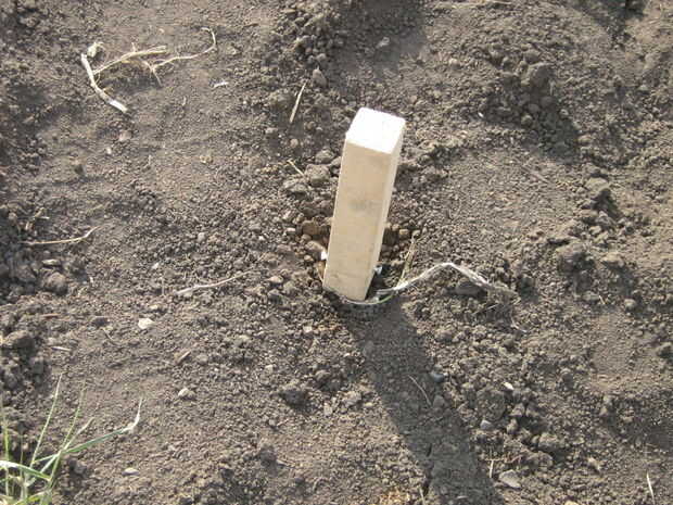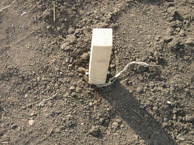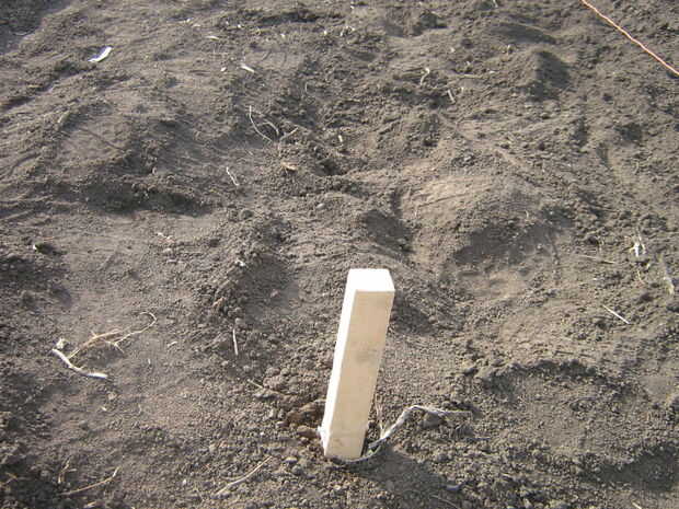 La primera parte de este paso es golpear los postes. Usted les libra en la tierra para que hubiera fijar una cuerda entre ellos, la cadena es derecho donde va la fila de semillas. Libra en profundidad suficiente para que los tornillos estén justo por encima de la tierra. Puede utilizar un martillo para hacer el golpe, como una mano no mucho.
