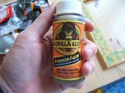 3. pegamento. Aunque soy un aficionado de epoxy, elegí "Gorilla Glue" para este proyecto debido a su tendencia a la espuma y ampliar. Esto es bueno para la celebración de objetos 3-d con que estará trabajando. Cualquier pegamento que trabaje con el no-porosa a poroso estaría bien. Si no te gusta el aspecto de la cola espumosa, ir con epoxi.