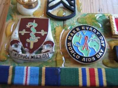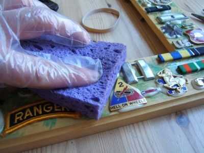 2. Aplique pegamento gorila en los espacios entre las insignias.