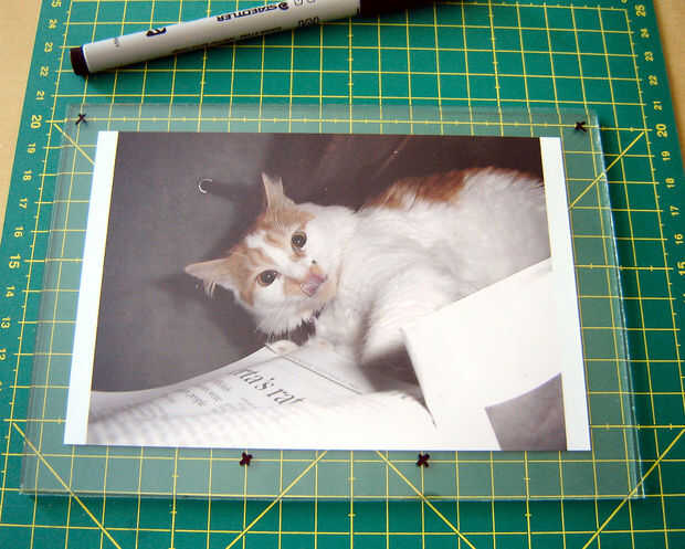 • Marque dos puntos en la parte inferior de la foto con un marcador no permanente. Esto es donde va a quedar la foto.