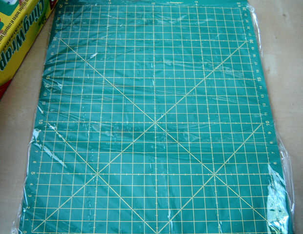 • Coloque un pedazo de envoltura se aferran en la superficie de trabajo.