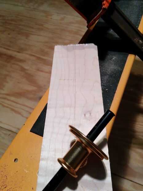 Mientras que se está secando, puede llegar a trabajar en la cabeza del macillo. Se necesitan cuatro pedazos. Dos de ellos serán 5 1/2" de largo. Los otros dos serán 2 1/4" largo, con un grado 2 cortar un extremo.