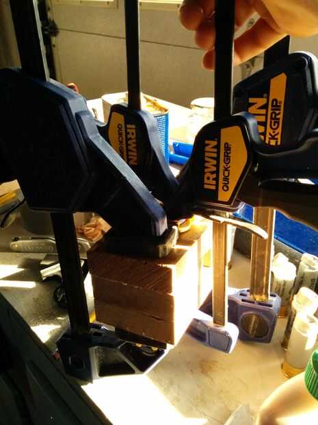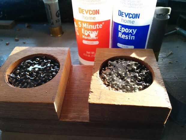 Llene los dos vacíos como cerca de la parte superior como usted puede con hacia el. A continuación, vierta una capa de epoxy en la parte superior para ayudar a consolidar todas las piezas sueltas. Finalmente, la tapa apagado con el otro 5 1/2" pieza abrazadera hacia arriba y dejar a un lado.
