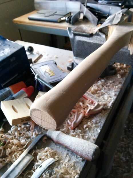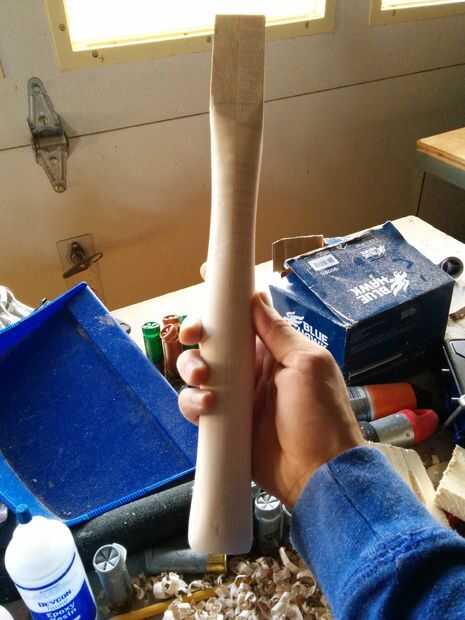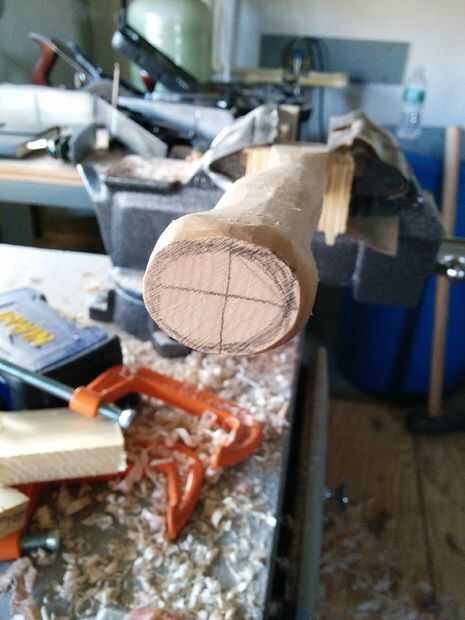 Ahora traza la forma que desee para su manija en los cuatro lados. En el extremo inferior del mango dibuja un óvalo para mostrar su ancho final. Después se presentan todas las líneas, poco a poco empezar a quitar material para parar periódicamente para comprobar la sensación y el tamaño de la manija. Confía en tus manos! Si se siente cómodo ir con él. Recuerde, sus líneas son solamente como una guía, pero la forma final será dictada por cómo se siente en tus manos.