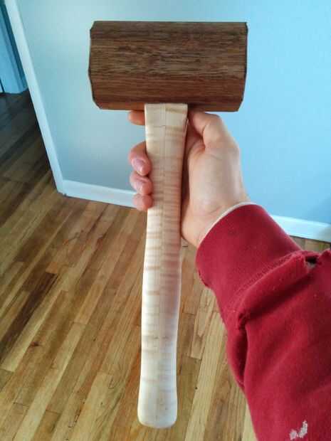 Después de todo haya secado, usted puede darle el mazo un lijado final a derribar cualquier bordes afilados o marcas de herramienta, dar una buena capa de aceite de linaza cocido y listo! Su martillo varonil es completa!!!