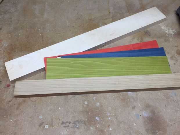 • Cortar seis piezas de chapa 2xred 2xblue 2xgreen