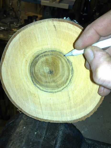 Marca un círculo en el centro en el extremo de la manija del registro unos 20mm más grande que será el mango.