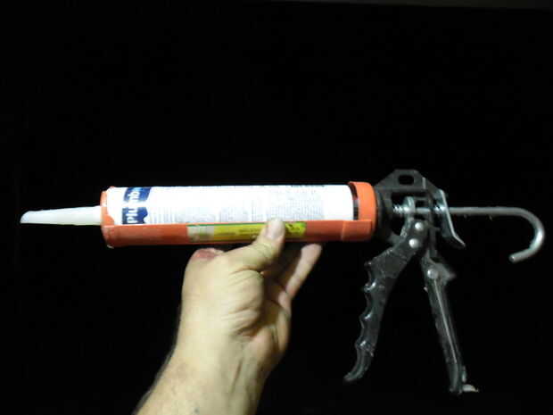 Aplique una capa de adhesivo de silicona - para peceras, canalones, ventanas, etc., en toda la cara y lo flatish paleta...