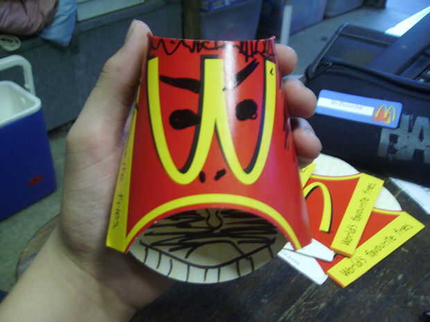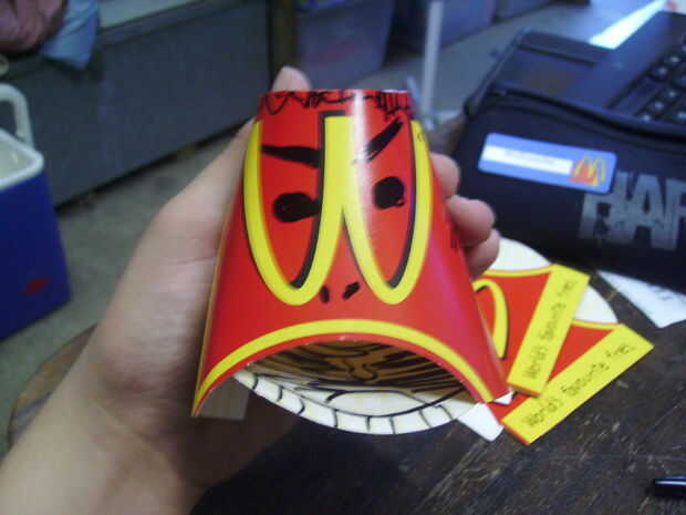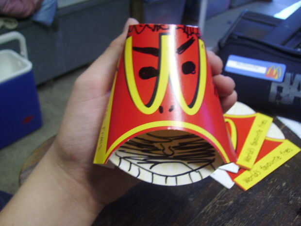 Esto es donde tu artista interior toma sobre - utilizando el nicko (o cualquier pluma en mano - si voy a escribir en la cartulina) comienza a dibujar la cara. No dude en utilizar la imagen de una guía, esta es mi interpretación de mi manager, Rodri, que no era enteramente agradecida por mi talento artístico cuando me quise trabajar.