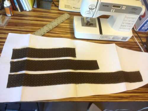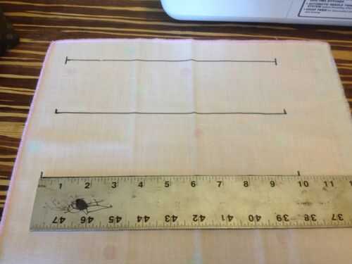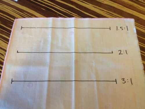 Utilice cualquier relación le gusta, pero marca la relación junto a cada línea para que pueda mantener la pista. Corte tus franjas de tela que volantes siguiendo las proporciones que ha decidido poner a prueba. Como se mencionó anteriormente, tengo las tiras que son 15", 20" y 30" de largo.