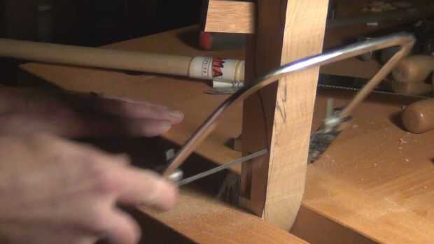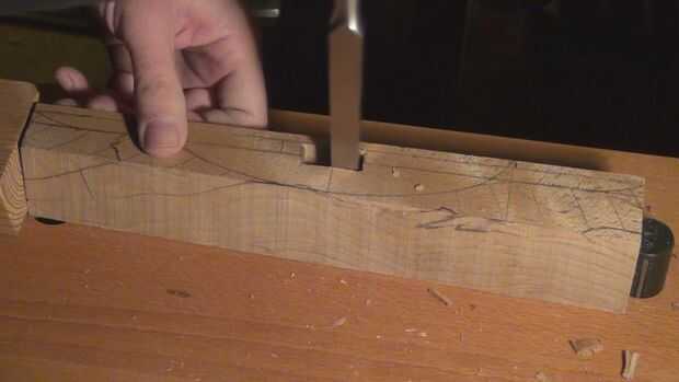 Cuchillo en la mortaja y extensión y entonces cortar la mortaja derecha a través. Cuando termines, extiende la mortaja en la cara a la extensión de 3/8" y en la cara opuesta por 1/4". Esto produce una hendidura inclinada en que se puede deslizar la cuña para apretar hasta la viga.