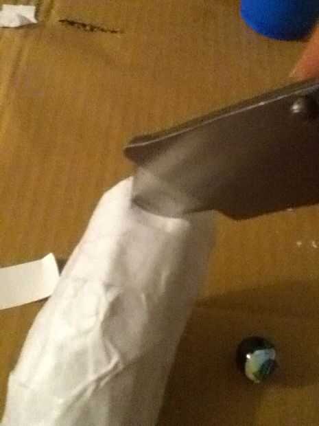 •obtener su cuchillo y cortó un agujero allí no demasiado grande aunque el mármol debe ser ajustado en el orificio