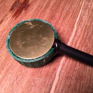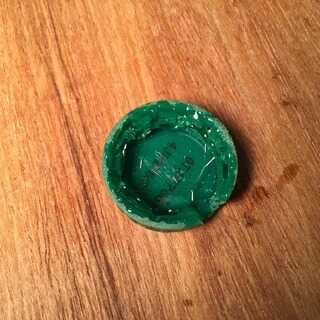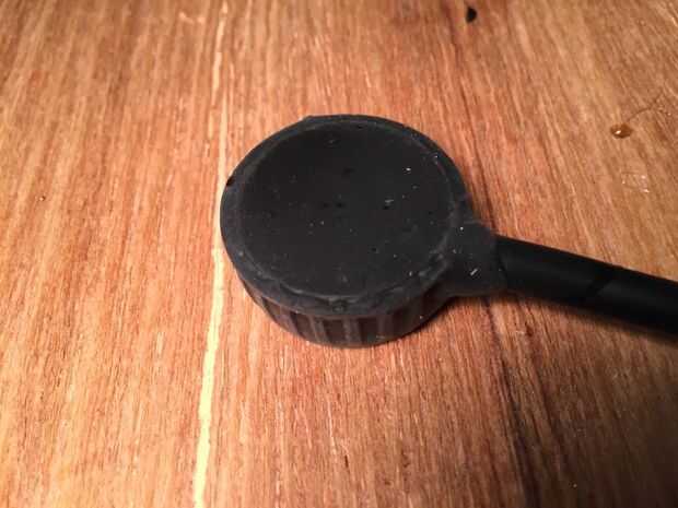 Aplican un generoso anillo de pegamento caliente en el interior borde de la tapa de la botella. El pegamento debe llegar justo hasta el borde de la tapa. Ver sus dedos--el pegamento caliente es caliente!