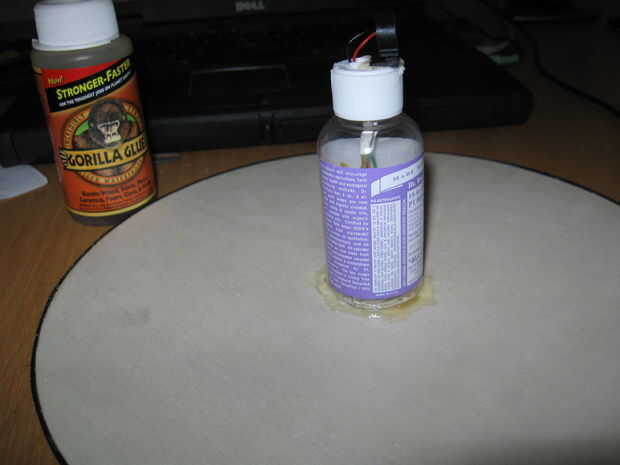 Si el micrófono está trabajando ahora que instale el micrófono en el tocadiscos (montaje del conector TRS hembra) y pegar la botella de plástico a la placa giratoria para el apoyo extra. Ahora completadas tu mic y giradiscos!