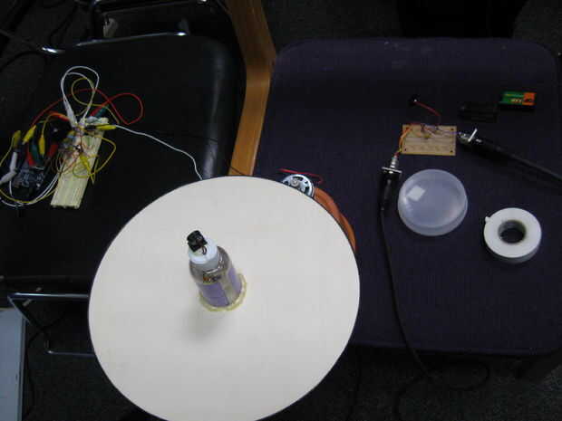 Una vez montado el micro simplemente deberás montar el motor y conectar engranajes de su motor hasta el borde exterior del plato giradiscos micrófono gire el micrófono a diferentes velocidades y direcciones. También puede probar el plato de micrófono con las manos en lugar de un motor de giro. El más ligero el peso de su plato los mejores resultados obtendrá. Diviértete con su nuevo micrófono giratorio!