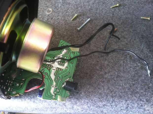 Uso un phillips destornillador para desarmar el parlante con el circuito del amplificador.  No necesita el otro (a menos que quieras tener un amplificador de altavoz doble).
