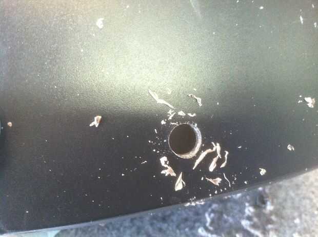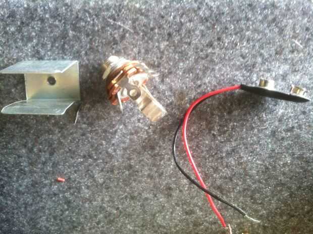 Taladre un agujero para el conector de 1/4". No lo hacen demasiado grande o el gato no apriete. Recordar, comenzar - siempre se puede hacer el agujero más grande - es muy difícil hacer el agujero más pequeño más adelante.