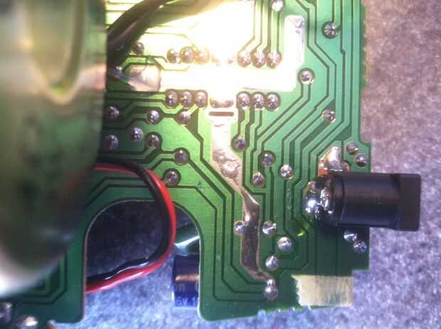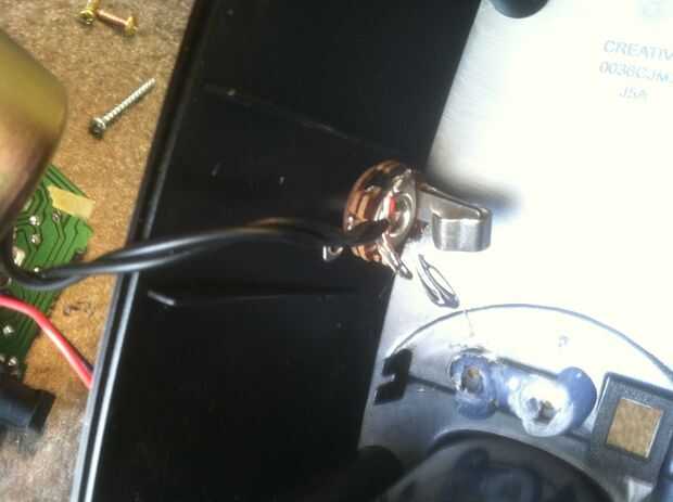 También, el cable de guitarra tiene que ir en el conector, así que ten cuidado donde taladra el agujero. La hice en el lado opuesto de la toma de auriculares y un poco hacia atrás para asegurarse de que el enchufe del cable no golpee al altavoz cuando lo enchufé.