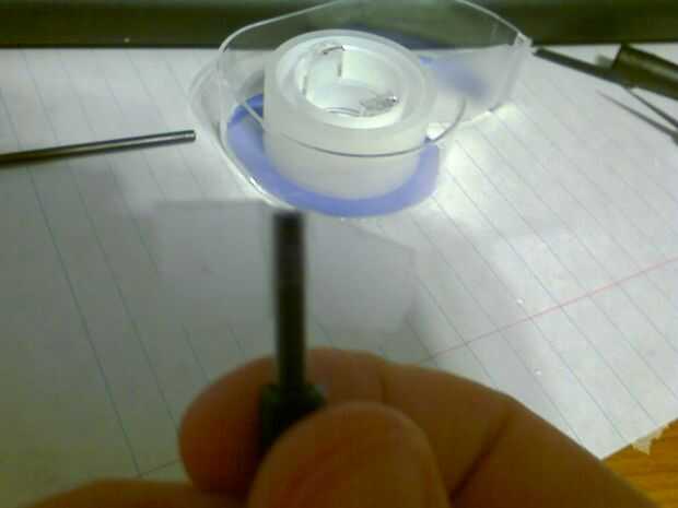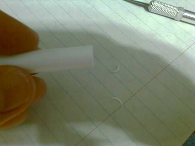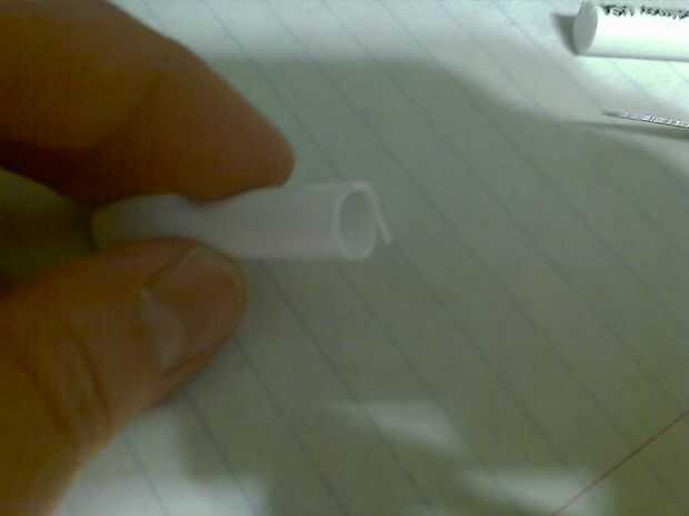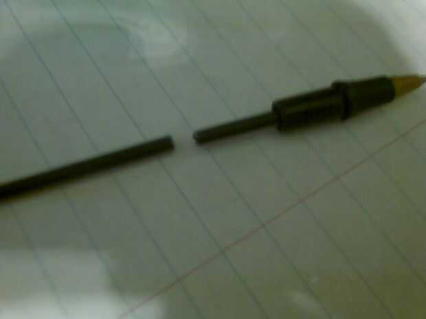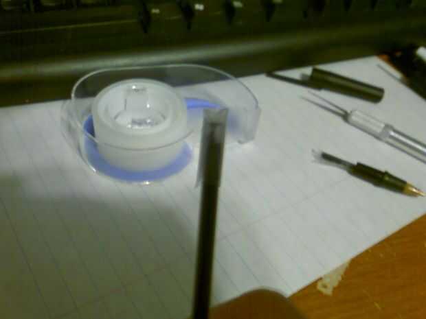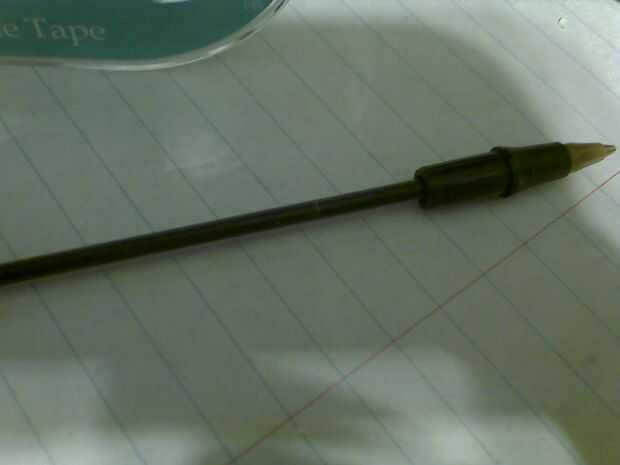 A continuación, cortar el cartucho de tinta. Hacer este rápido (tijeras pueden conseguir manchadas) y cinta adhesiva como se muestra en las fotos. Cinta adhesiva el otro extremo (que se descartarán) es necesario si quieres evitar tinta consiguiendo todo el bote de basura.