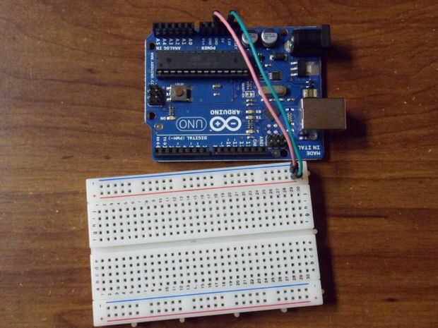 Ejecutar un cable de puente desde el pin del Arduino GND a un protoboard "-" fila.