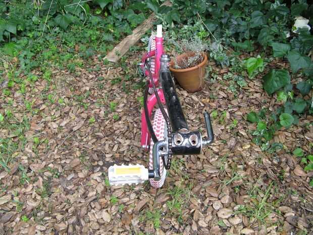 Cadena inferior ejecute está encerrado en un 5/8" pieza de diámetro de tubo de riego para ayudar a distribuirlo alrededor de la hoja de la horquilla de goteo de plástico (polietileno).